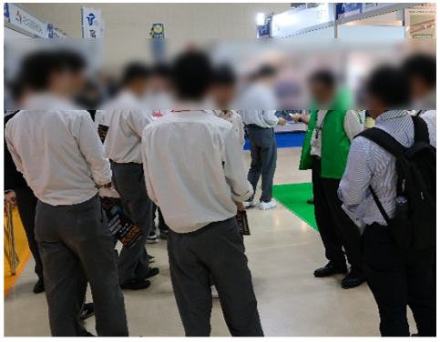 新潟県内の工業系学校5校(短大1校、高専1校、高校3校)の学生を招待、2日間で 155名が来場し、熱心に各展示ブースを見学していました。
