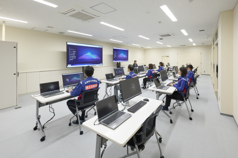 研修ルームにはBIM/CIM対応のパソコンが設置されており、BIM/CIMモデルの操作体験やICT施工に関する研修を受けることが可能です。DXデータセンターより、実際に納品されたBIM/CIMモデルを閲覧することもできます。