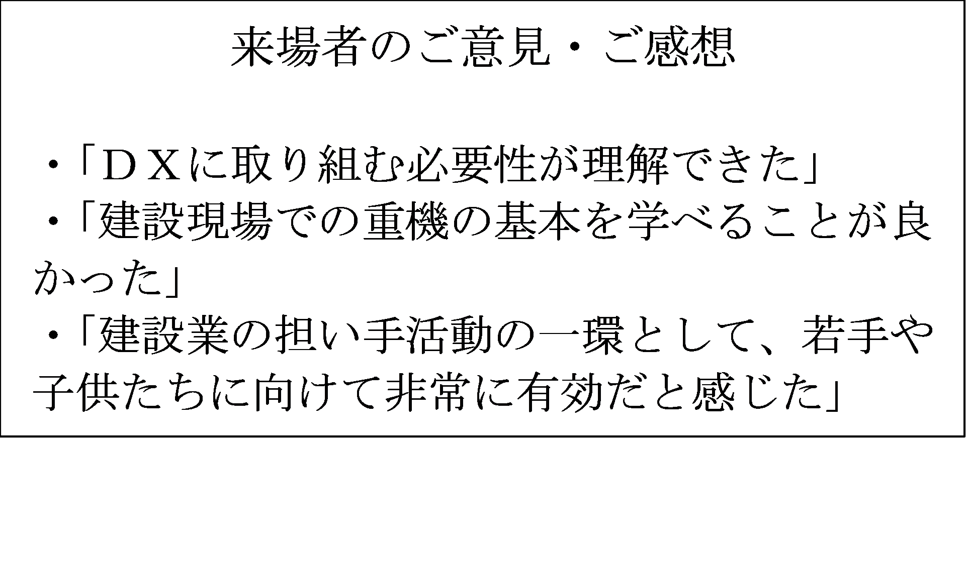 将来の建設業に携わる人材の育成に向け、期待のこもった前向きなご意見・ご感想を頂きました。