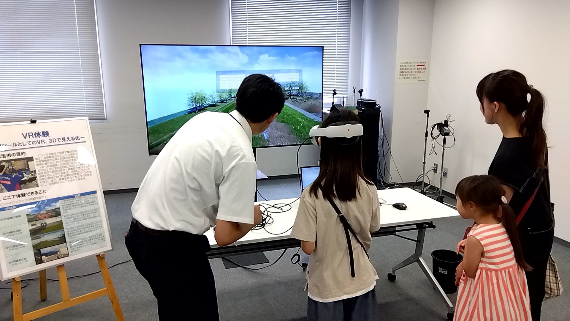 北陸地方整備局では、地域住民、特に子供たちやそのご家族に向けた「見学デー」を毎年開催しています。将 来の建設業を担う子どもたちに関心を持ってもらうことを目的に、当センターもDXルームを出張開催しました。