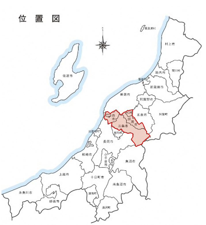 新潟県三条地域振興局は、三条市、燕市、加茂市、南蒲原郡田上町及び西蒲原郡弥彦村の3市1町1村を管轄しています。この地域は、新潟県の中央付近に位置していることから「県央地域」とも呼ばれ、「県央」は病院や高等学校等の名称に使用されるなど県民にも広く認知されています。管内の面積は約730平方キロメートル、約20万人が暮らしています。中央に広がる越後平野を信濃川が縦貫し、西部には弥彦山を含む国定公園が、東部には、栗ヶ岳・守門岳に代表される県立自然公園・国定公園があり、東部の山々からは、五十嵐川、加茂川などが豊かな水を信濃川へ注ぐ、自然に育まれた地域です。
