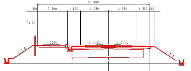計画幅員 :13.0m(車道3.25m×2、歩道3.50m(暫定2車線供用))