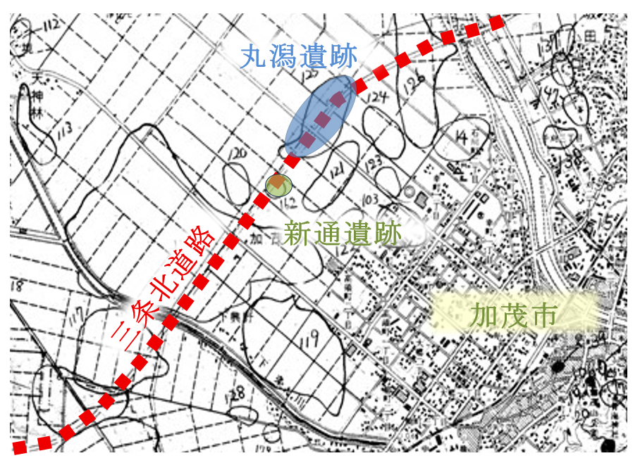 三条北道路の計画ルート上には、多くの埋蔵文化財包蔵地が確認されており、本事業を進めるにあたり、貴重な文化財である先人たちの営みを記録すべく、各市町の協力のもと遺跡調査が行われました。