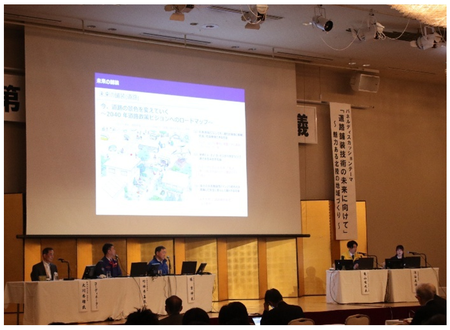 「道路舗装技術の未来に向けて~魅力ある北陸の地域づくり~」をテーマに、新潟工科大学 前学長の大川秀雄氏をコーディネーターとして、4名のパネリストを迎え、約2時間行った。